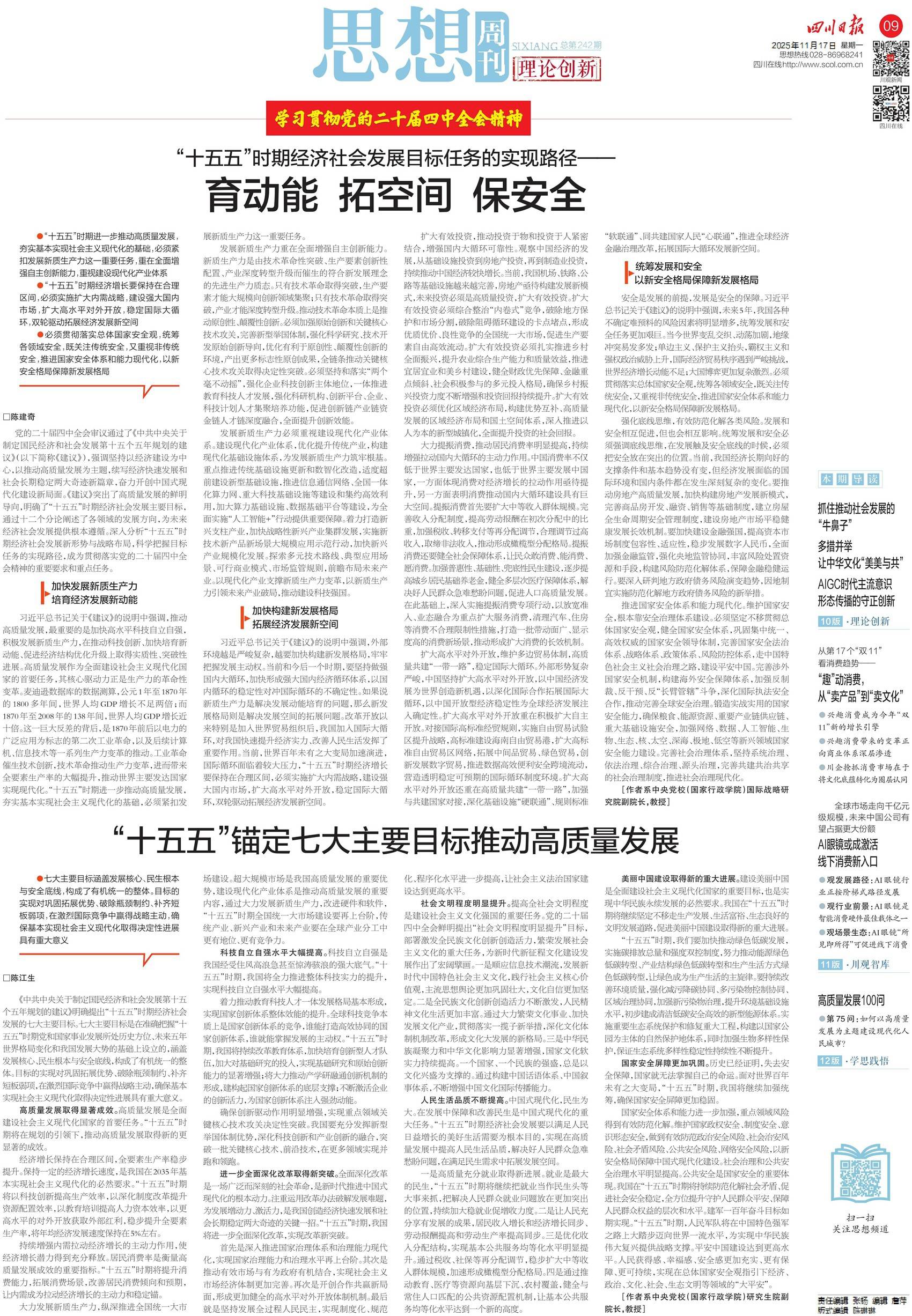 学习贯彻党的二十届四中全会精神|“十五五”锚定七大主要目标推动高质量发展