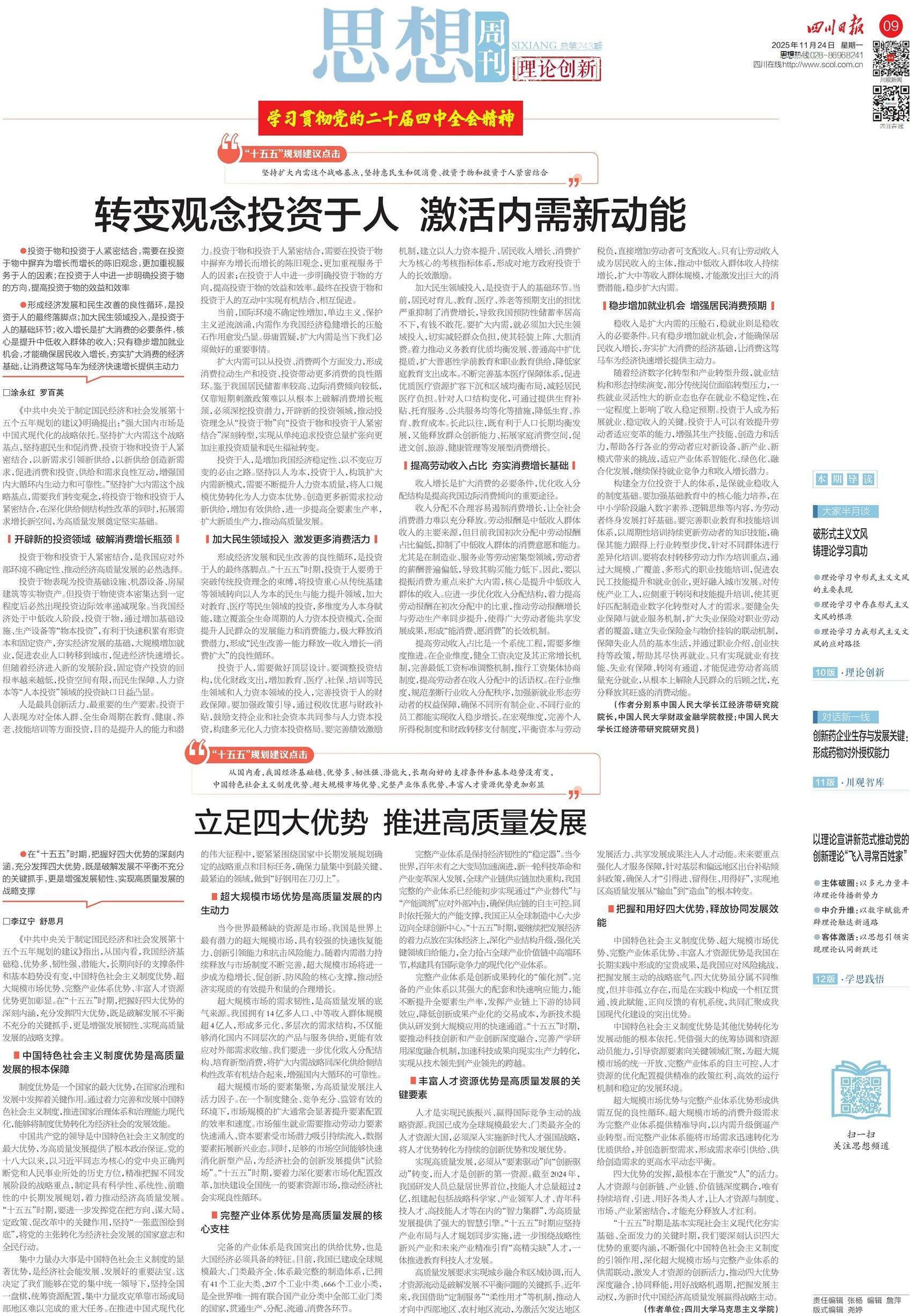 学习贯彻党的二十届四中全会精神| 转变观念投资于人 激活内需新动能