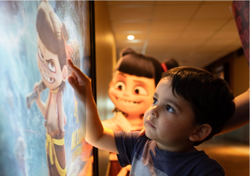 10月2日,一名男孩在阿根廷首都布宜诺斯艾利斯的一家电影院观看《哪吒2》海报。新华社发(马丁·萨巴拉摄)