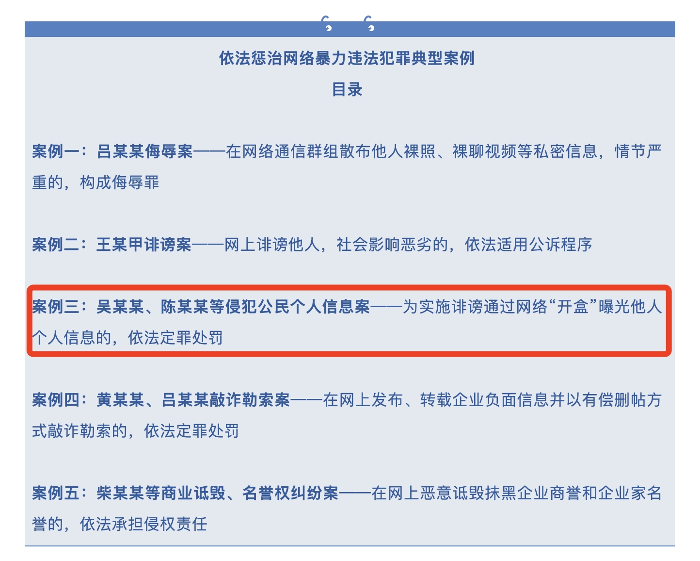 3月3日,最高人民法院发布依法惩治网络暴力违法犯罪典型案例,其中通过网络“开盒”曝光他人个人信息,涉案被告人最高获刑一年一案受到广泛关注。