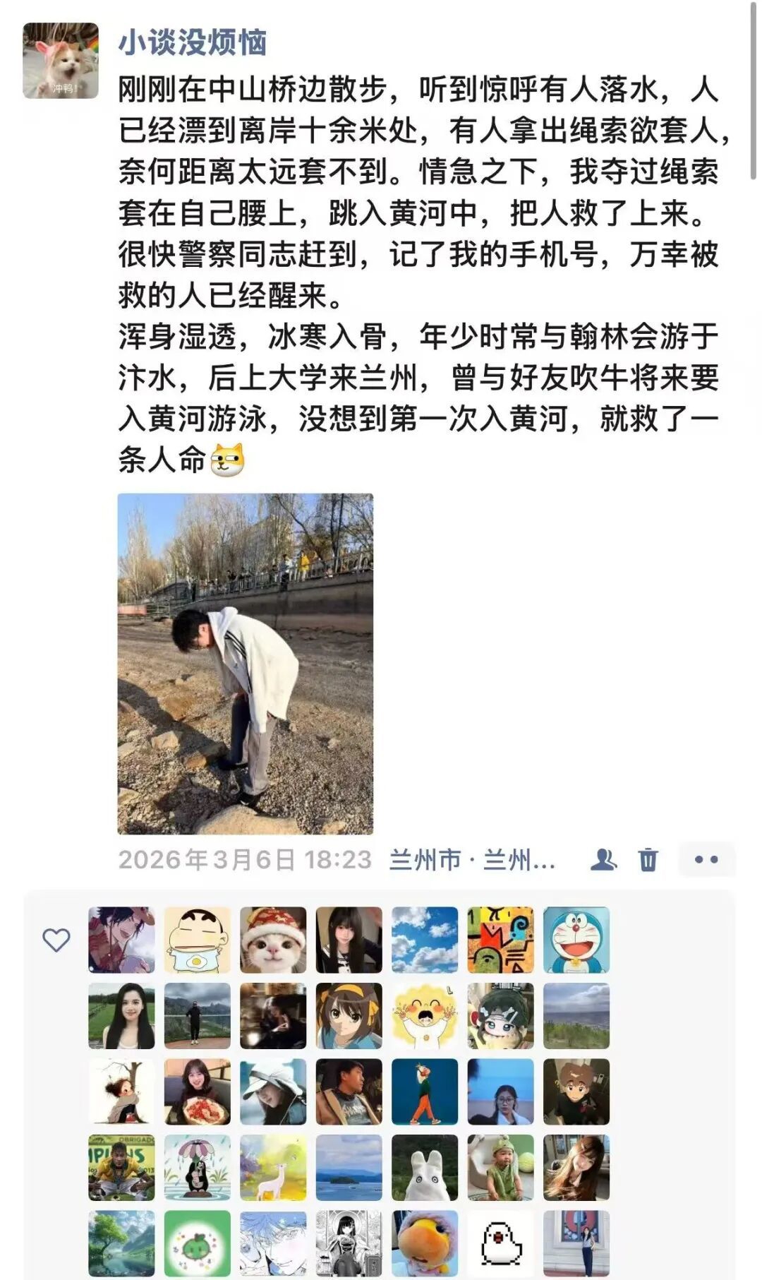 近日,兰州大学历史博士生谈磊黄河救人的善举刷屏网络。
