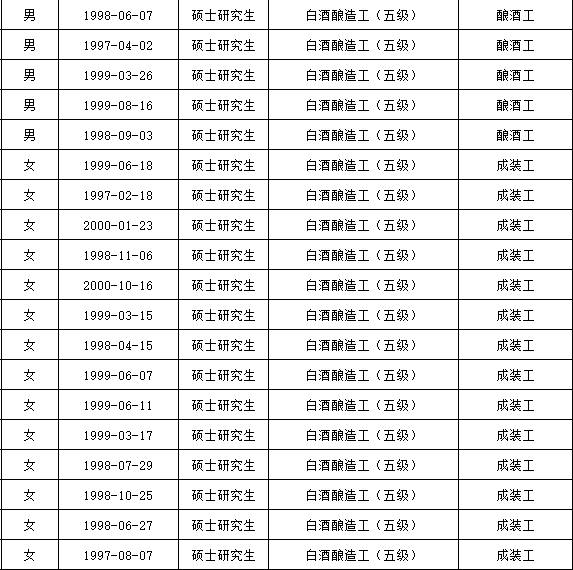 拟录用人员名单节选。图源汾酒集团官网